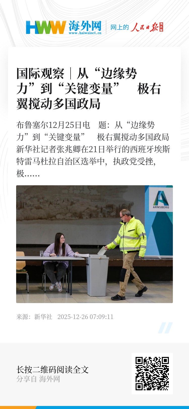 新华社布鲁塞尔12月25日电 题:从“边缘势力”到“关键变量” 极右翼搅动多国政局