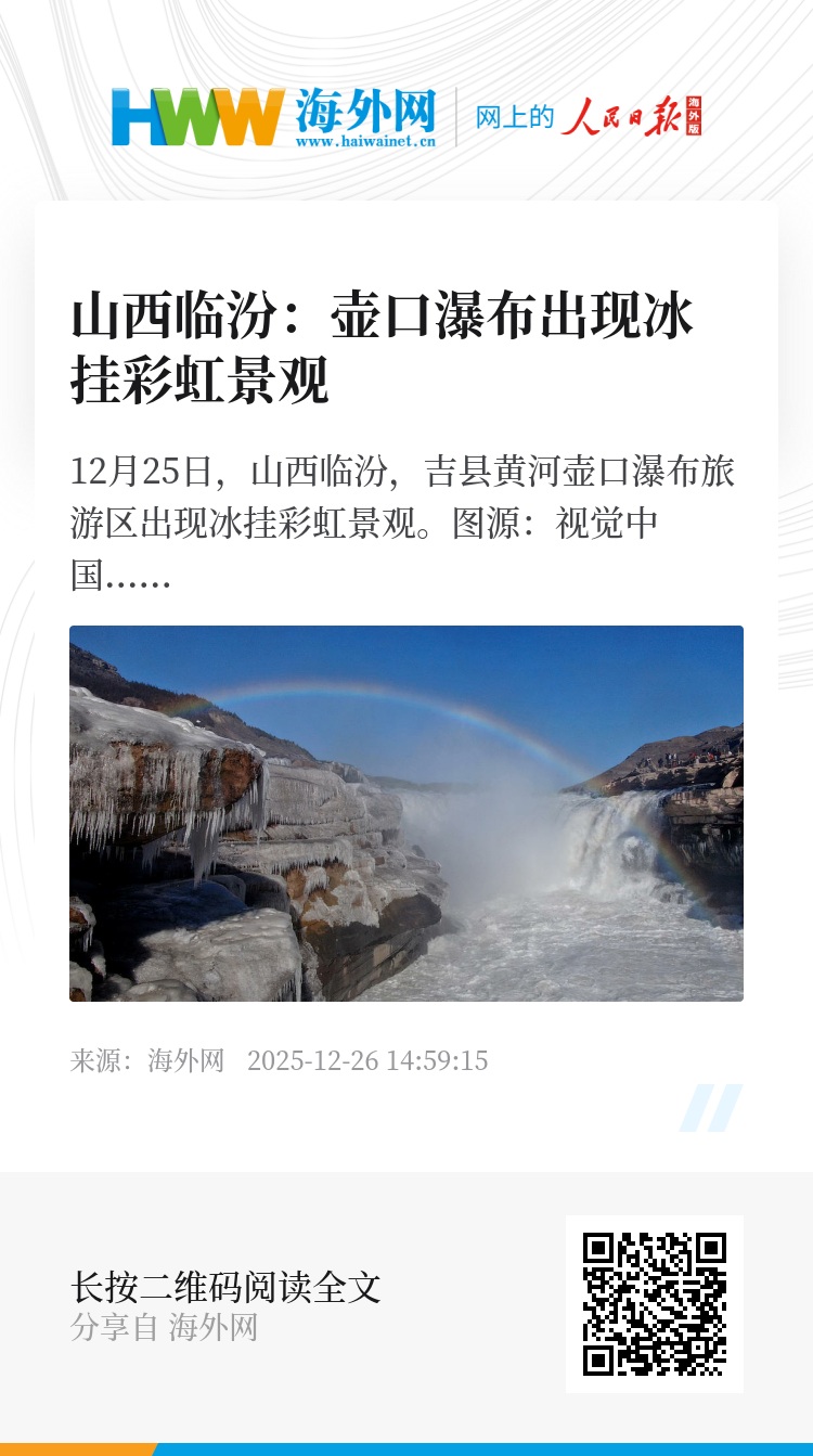 32919275,.山西临汾:壶口瀑布出现冰挂彩虹景观,.2025-12-26 14:59:15,.204309,.陈亚楠、侯兴川
