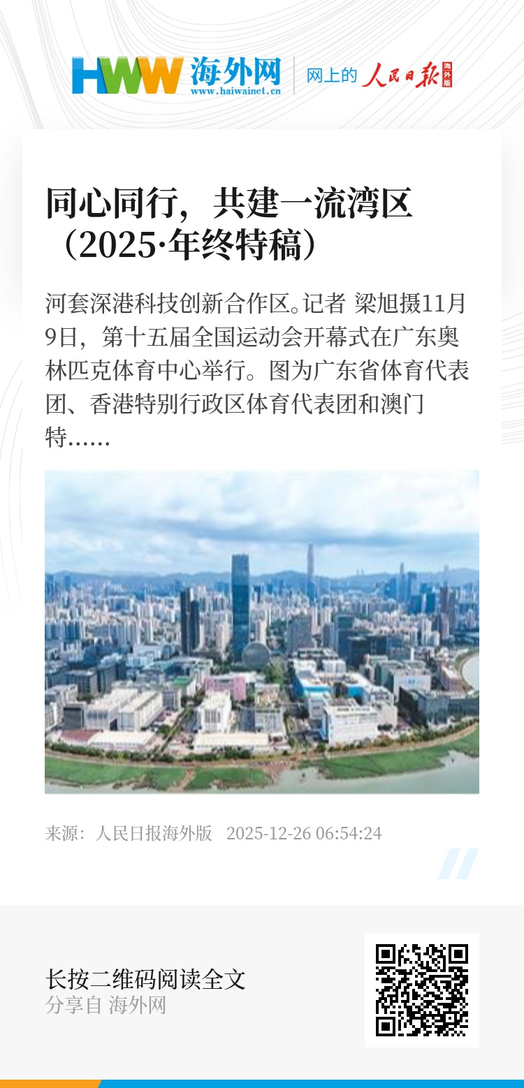 截至目前,大湾区已布局9个重大科技基础设施,建成2家国家实验室、45家全国重点实验室以及33家粤港澳联合实验室;国家和省市区科技计划项目持续向港澳机构开放,广东省级财政科研资金跨境拨付至港澳累计超6亿元;“深圳—香港—广州”创新集群创新指数今年跃居全球第一,“澳门—珠海”集群也连续两年入围全球百强;“港澳高校—港澳科研成果—珠三角转化”的协同模式,让越来越多科研成果成功落地……一个以科技创新为引擎的湾区发展新格局,正加速形成。