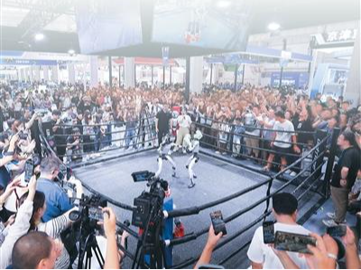 参观者在2025世界机器人大会上观看机器人拳击表演。陈晓根摄(人民视觉)