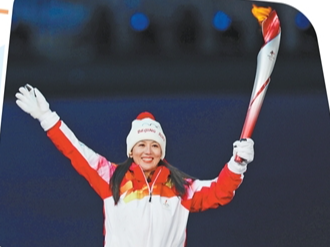 杨扬在2022年北京冬奥会开幕式上传递火炬。