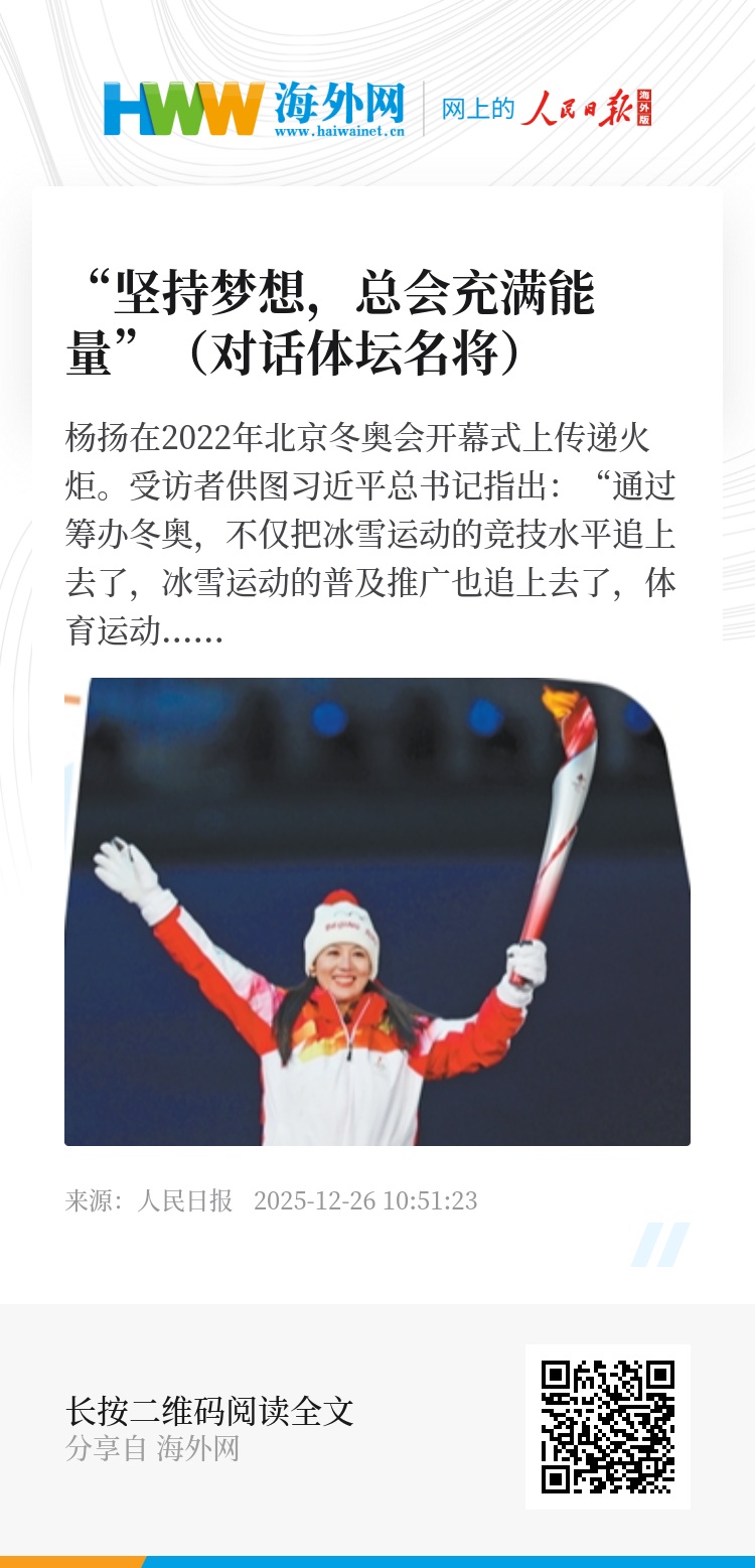 答:我想立足现在的事业做些延展,在国际体育组织继续发挥作用,持续推广冰雪项目。要坚持做正确的事,很多事看起来是付出,其实也在滋养自己。(记者 季芳)