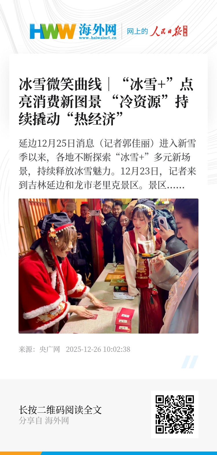 “民俗风情与冰雪景观交融,互动体验与自然生态结合,多元化新场景正持续释放冰雪魅力。”北京第二外国语学院旅游管理系主任宋昌耀表示,从单一观光到场景化体验的转变,既是冰雪经济响应消费升级、满足游客参与感与沉浸感的必然举措,也是冰雪产业链延伸拓展、培育新增长点的主要路径。