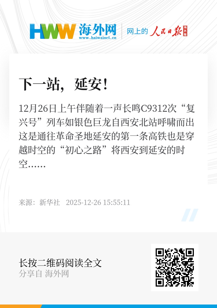 12月26日,西延高铁首发列车准备从延安站发车。新华社记者 张博文 摄