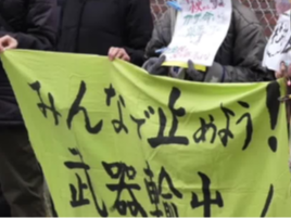 在集会现场,抗议者手举写有“不要出售‘日本制造’的武器”“不要战争”“坚决反对武器出口”等字样的牌子,要求执政联盟停止旨在放宽武器出口限制的一切努力。