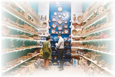 第八届进博会消费品展区,客商正在参观来自伊朗的陶瓷制品。新华社记者 鲁 鹏摄