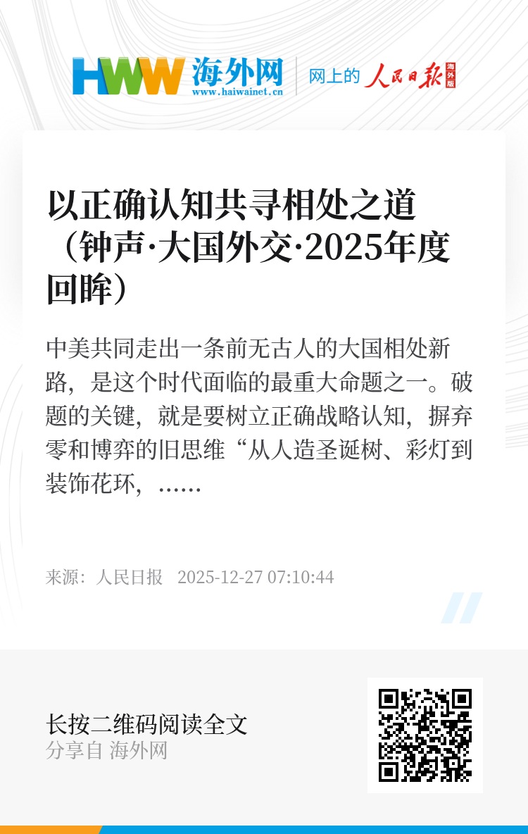 2025年,从太平洋东岸涌起的一场关税海啸,给包括美国人民在内的各国人民福祉都造成严重损害。这再次证明,在各国利益深度交融的今天,零和博弈寸步难行,互利共赢才是人间正道。