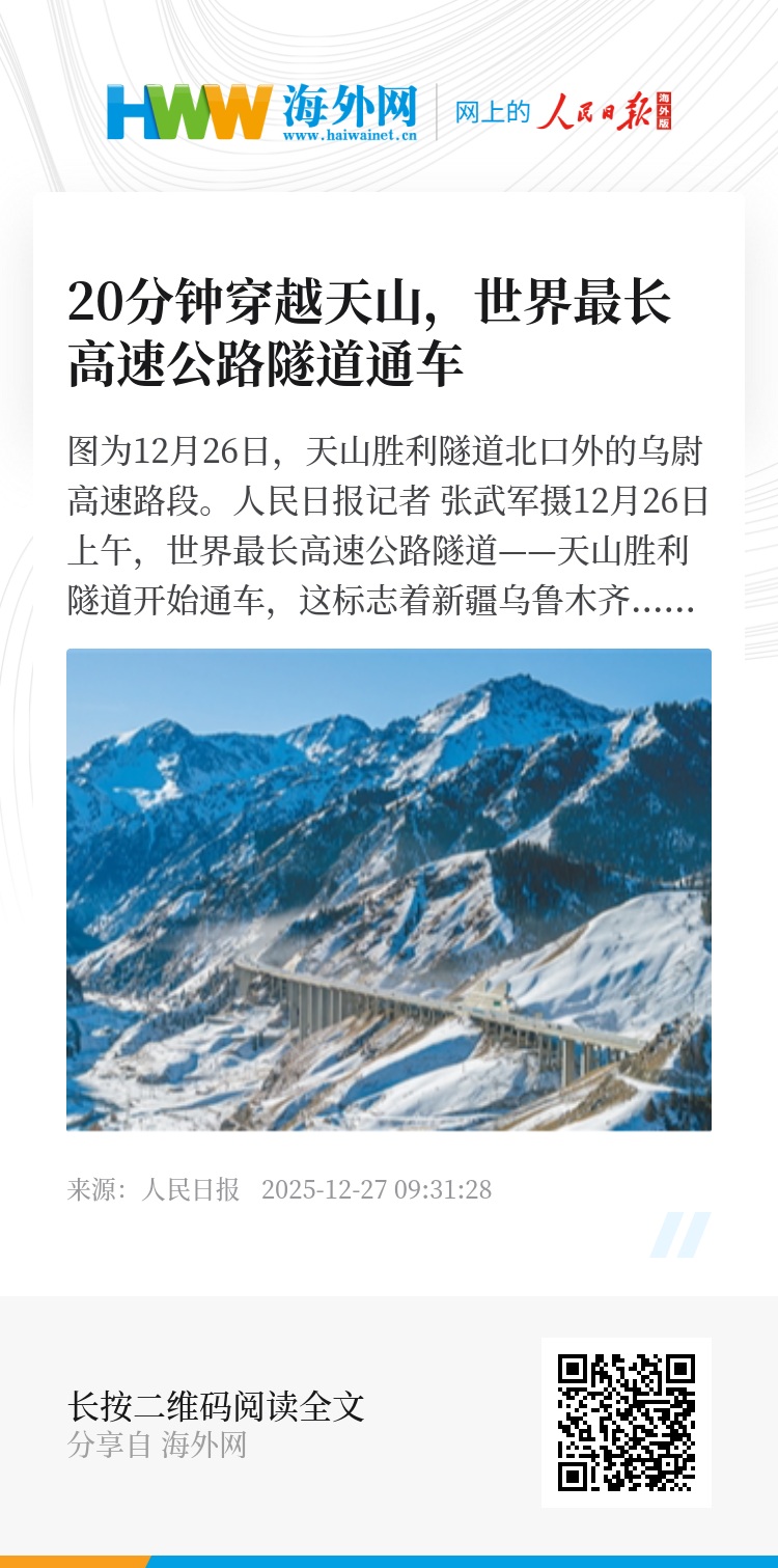 天山,曾是分隔南北疆的天然屏障。如今,穿越天山南北只需约20分钟。