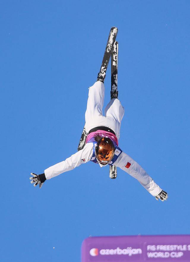 ↑2025年12月21日,中国一队选手徐梦桃在国际雪联自由式滑雪空中技巧世界杯(云顶站)混合团体项目决赛中。