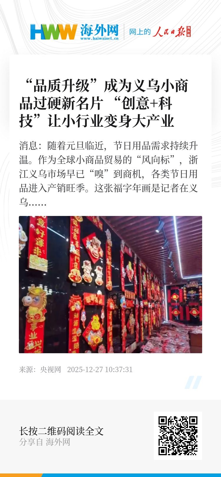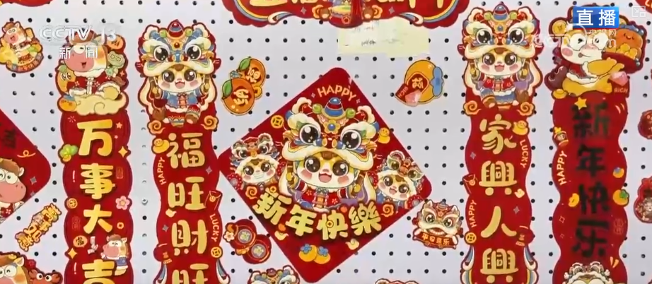 这张福字年画是记者在义乌小商品城的喜庆用品专区“抢”到的。为什么说“抢”?因为很多热门款式早就卖空了。义乌一直被叫作节庆用品的“风向标”,2025年流行什么、什么好卖,到这儿转一圈心里就有数了。