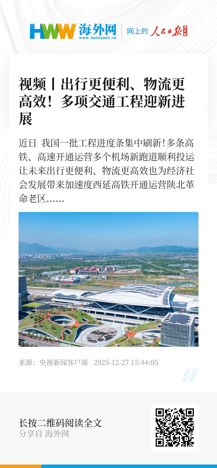 12月26日,西安至延安高速铁路正式开通运营,陕北革命老区迈入高铁时代。我国高铁运营里程突破5万公里,建成世界上规模最大、现代化水平最高的高速铁路网。