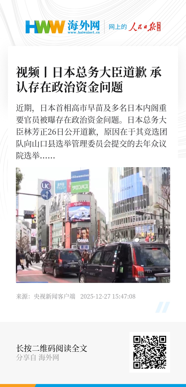 林芳正26日表示,这一资金问题源于其私人秘书处理报告的方式不当,他对此深表歉意。同时林芳正拒绝就此引咎辞职,称“将继续履行总务大臣的职责,并彻底防止此类问题再次发生”。