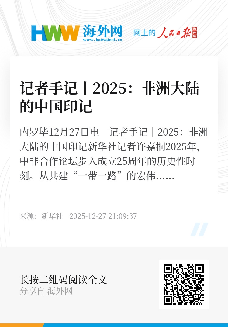 新华社内罗毕12月27日电 记者手记|2025:非洲大陆的中国印记