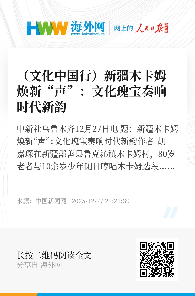 中新社乌鲁木齐12月27日电 题:新疆木卡姆焕新“声”:文化瑰宝奏响时代新韵