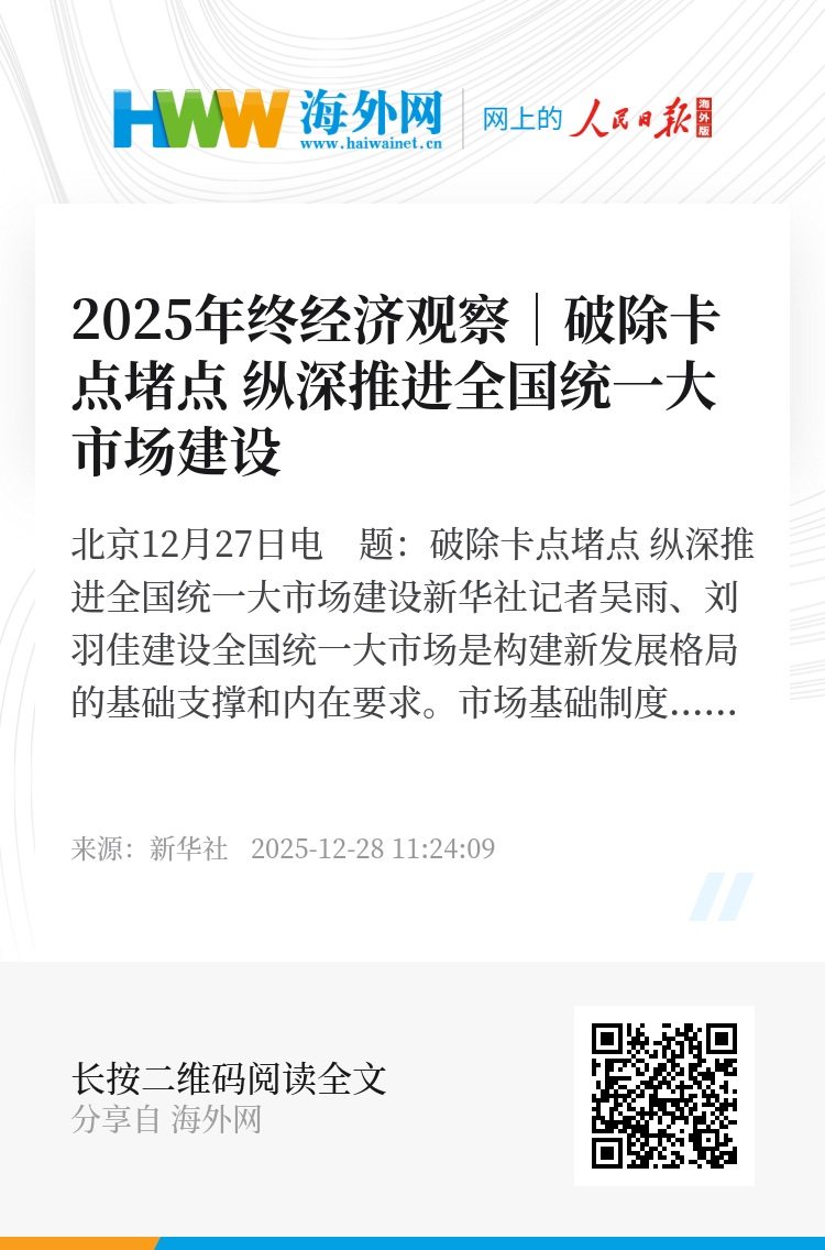 新华社北京12月27日电 题:破除卡点堵点 纵深推进全国统一大市场建设
