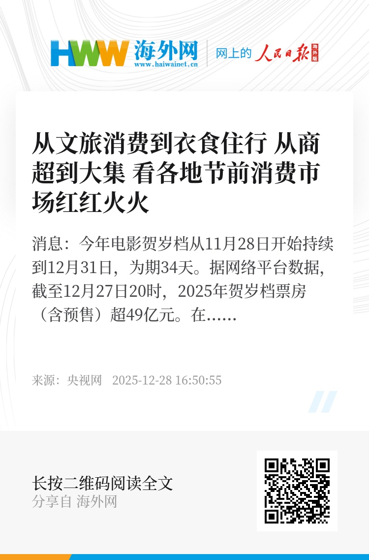 央视网消息:今年电影贺岁档从11月28日开始持续到12月31日,为期34天。据网络平台数据,截至12月27日20时,2025年贺岁档票房(含预售)超49亿元。