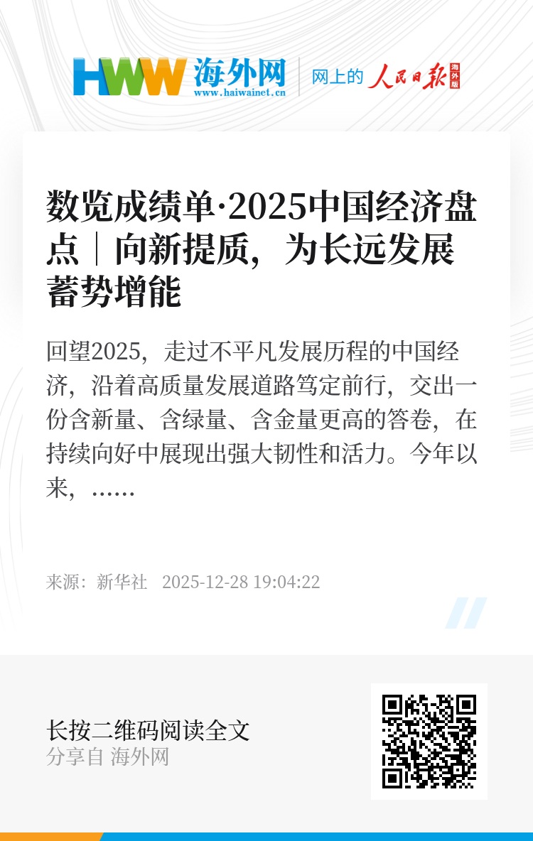 回望2025,走过不平凡发展历程的中国经济,沿着高质量发展道路笃定前行,交出一份含新量、含绿量、含金量更高的答卷,在持续向好中展现出强大韧性和活力。