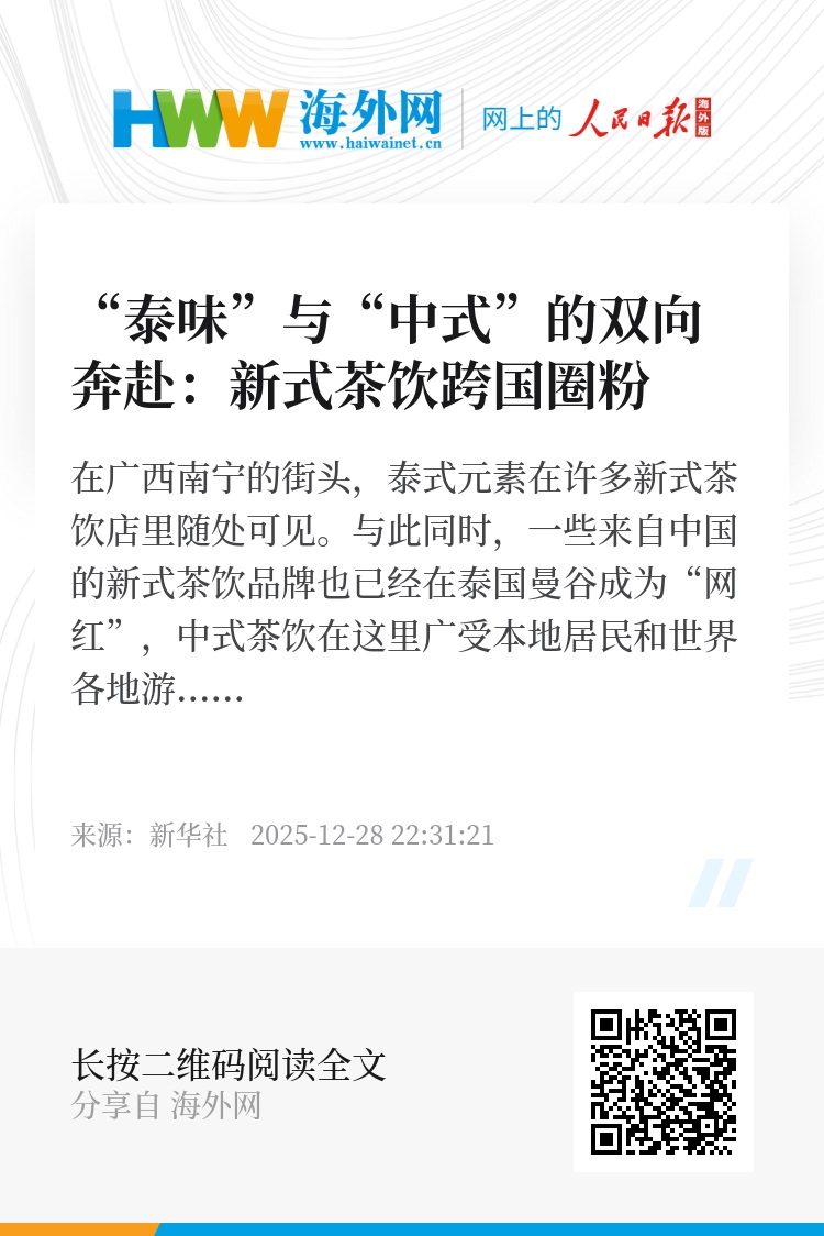 一杯杯新式茶饮,串联起中泰两国人民的味蕾共鸣。双向奔赴的不仅是饮品的交融,更是民心的相通。