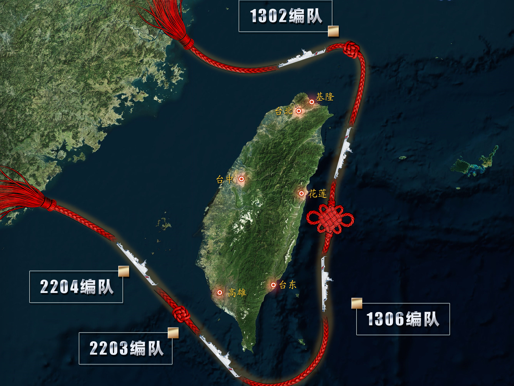 中国海警局发布此次环台岛执法巡查示意图,示意路线整体采用红色缆绳造型,既是象征两岸同胞血脉相连的“红绳”,也是警示“台独”分裂势力的“红线”,而且“绳”与“省”同音,强调了台湾就是中国的一个省。图中以中国结作点位标识,强调两岸文化同根同源、同文同宗的事实。其中,位于台岛以东的“盘长结”寓意永不分离,象征两岸不可分割;台岛北部、西南的“藻井结”寓意秩序井然,象征海警执法行动将依法惩治“台独”分裂势力,坚决反对外部势力干涉,有力维护台海和平稳定。
