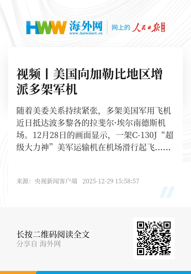随着美委关系持续紧张,多架美国军用飞机近日抵达波多黎各的拉斐尔·埃尔南德斯机场。12月28日的画面显示,一架C-130J“超级大力神”美军运输机在机场滑行起飞,CV-22B“鱼鹰”倾转旋翼机停放在停机坪。同时,悍马军车和防地雷反伏击车(MRAP)等美军地面车辆也出现在该区域。