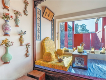 闻名遐迩的三希堂,位于养心殿内西暖阁,原为乾隆的书房,名温室,后因乾隆年间收藏王羲之《快雪时晴帖》、王献之《中秋帖》、王珣《伯远帖》三件稀世墨宝而得名,“三希”亦含“士希贤、贤希圣、圣希天”的修身箴言。透过明亮的玻璃,观众可以看到,堂内墙上还悬挂着各式瓷瓶,瓶中插有宝石花。