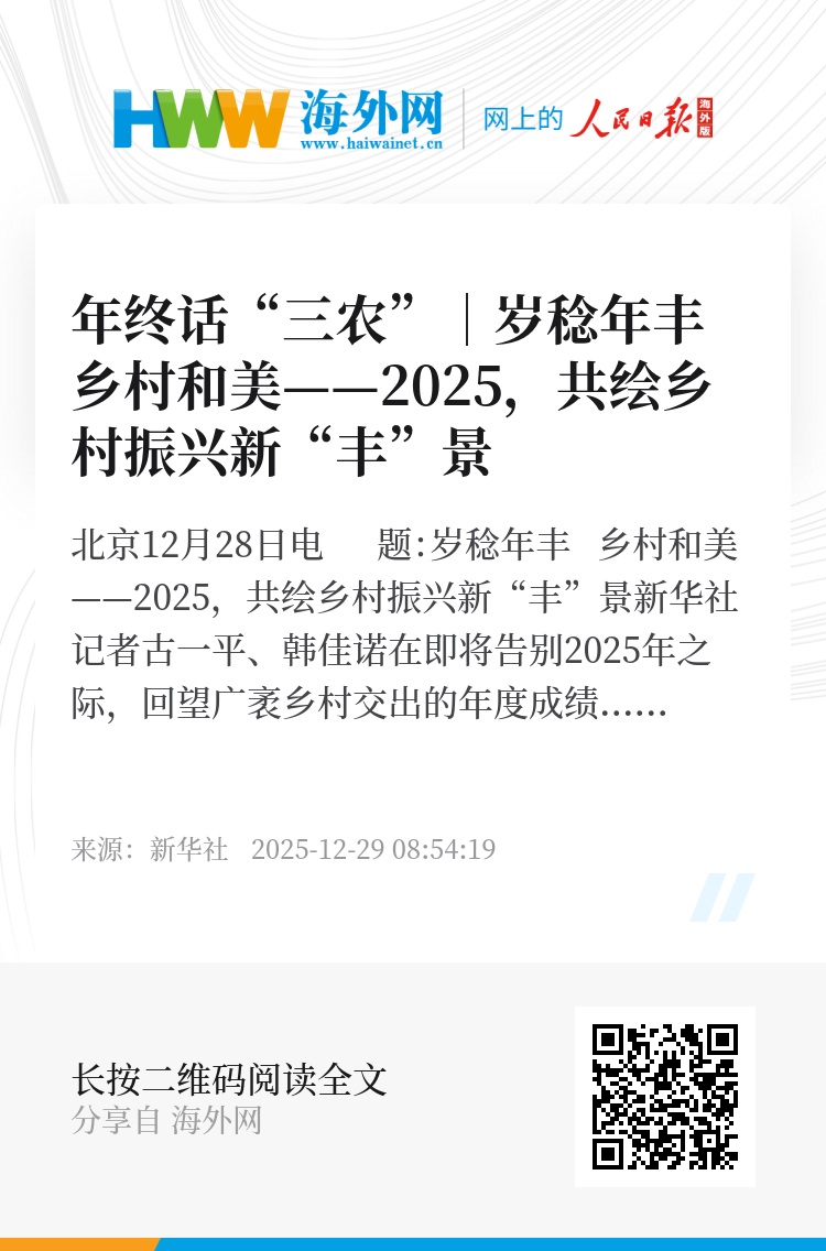 新华社北京12月28日电 题:岁稔年丰 乡村和美——2025,共绘乡村振兴新“丰”景