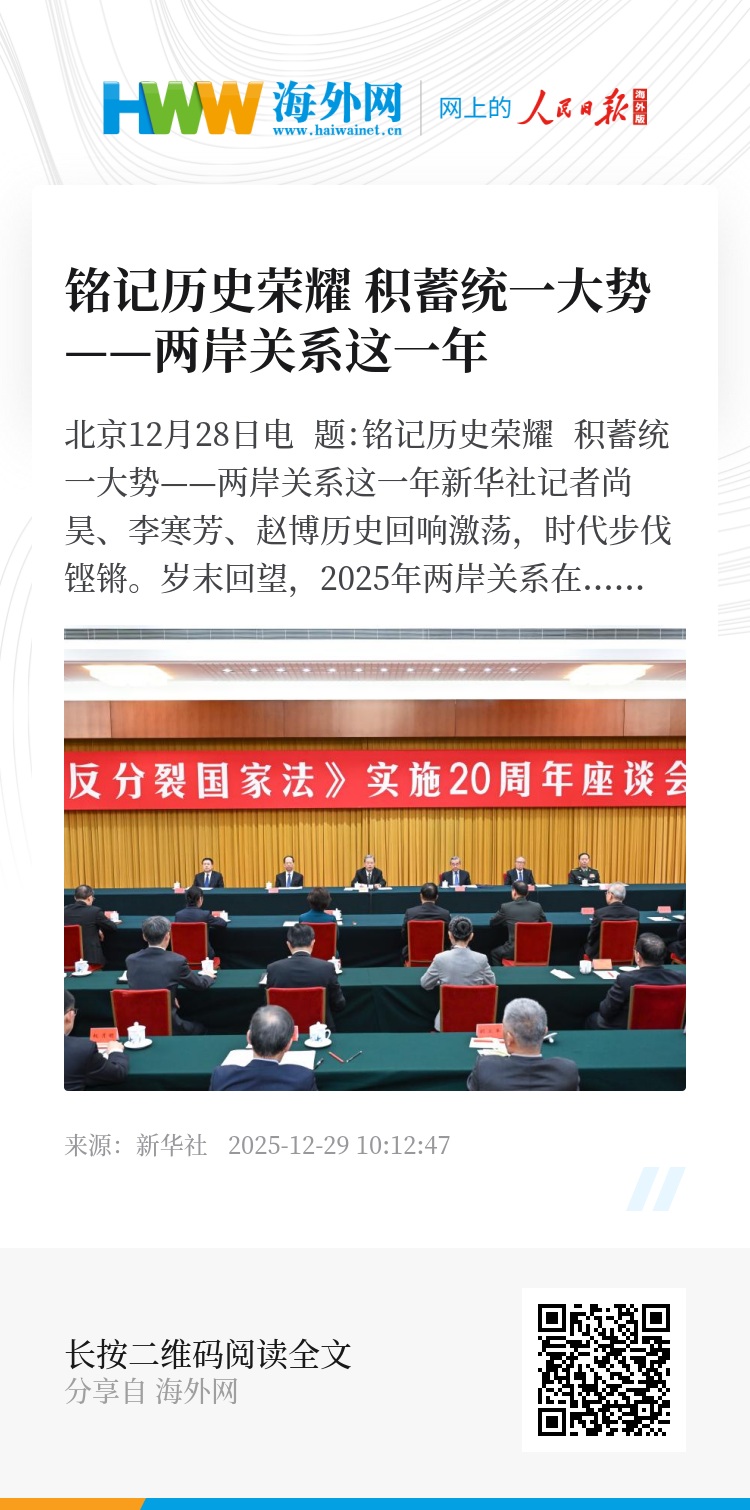 历史回响激荡,时代步伐铿锵。岁末回望,2025年两岸关系在复杂严峻的风险挑战中克难前行。