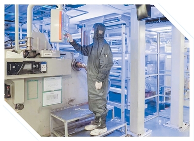 在凯鑫森位于上海金山区的工厂里,作业员正在进行液晶显示用光学膜产品生产。