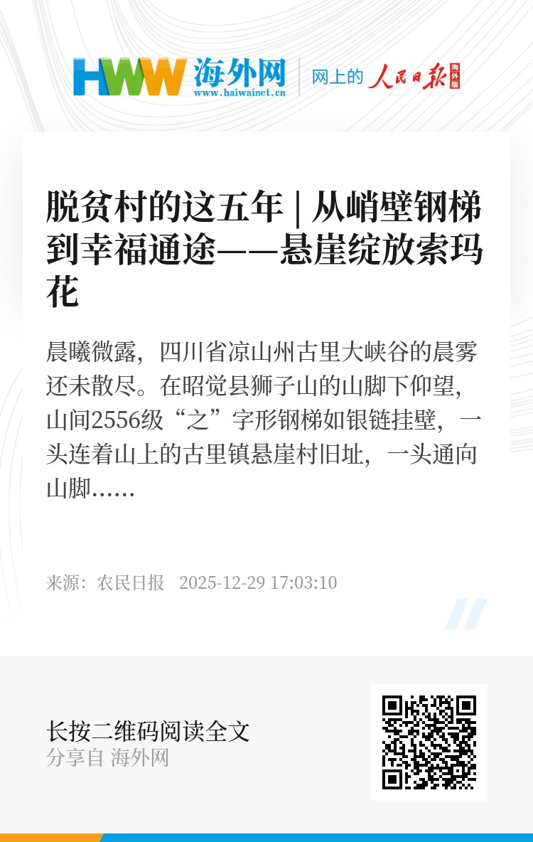从“挂”在悬崖上的土屋,到搬进设施完善的县城新居,悬崖村282户1219名村民完成了一场跨越世代的跃迁,恰似那遍开山谷的索玛花,不仅迎来属于自己的绽放时刻,也成为“中国最贫困的角落”破茧成蝶的缩影。