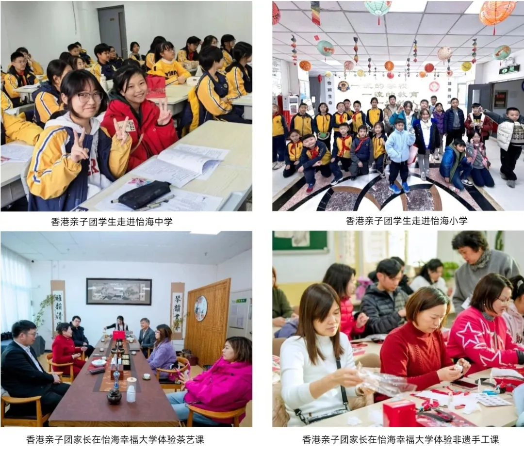 活动当天,香港亲子团还走进怡海学校中小学课堂,体验书法、科学实验、非遗手工等课程,感受传统与现代交融的教学理念。