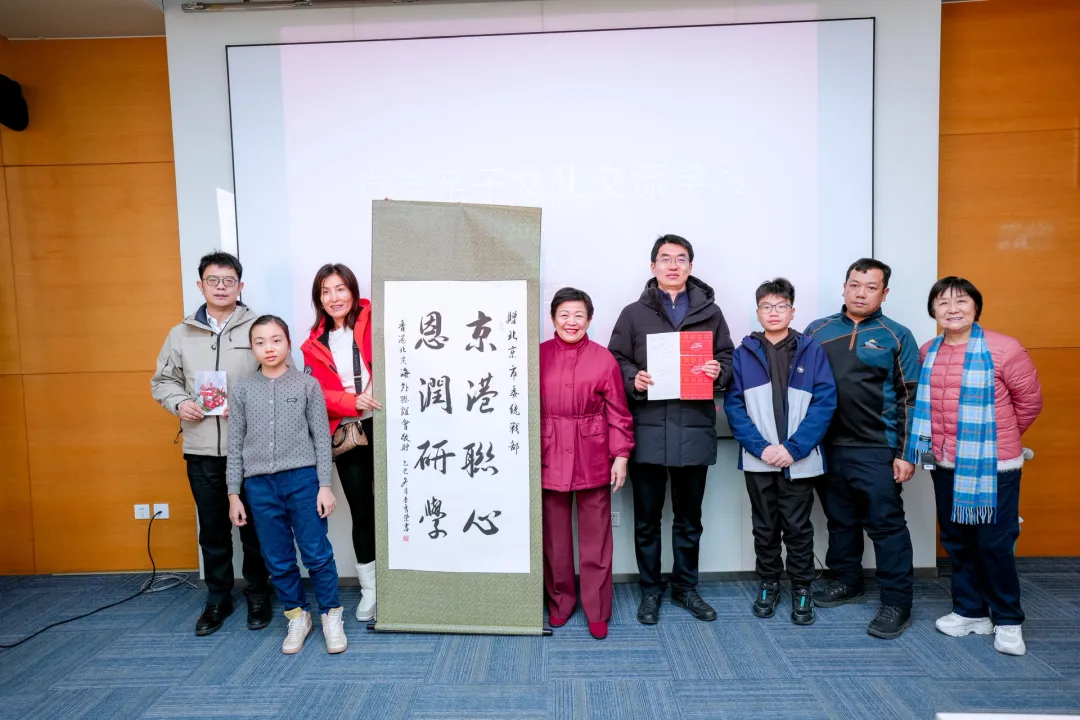 香港北京海外联谊会亲子团向王琳达会长赠送书法作品《京港联心 恩润研学》