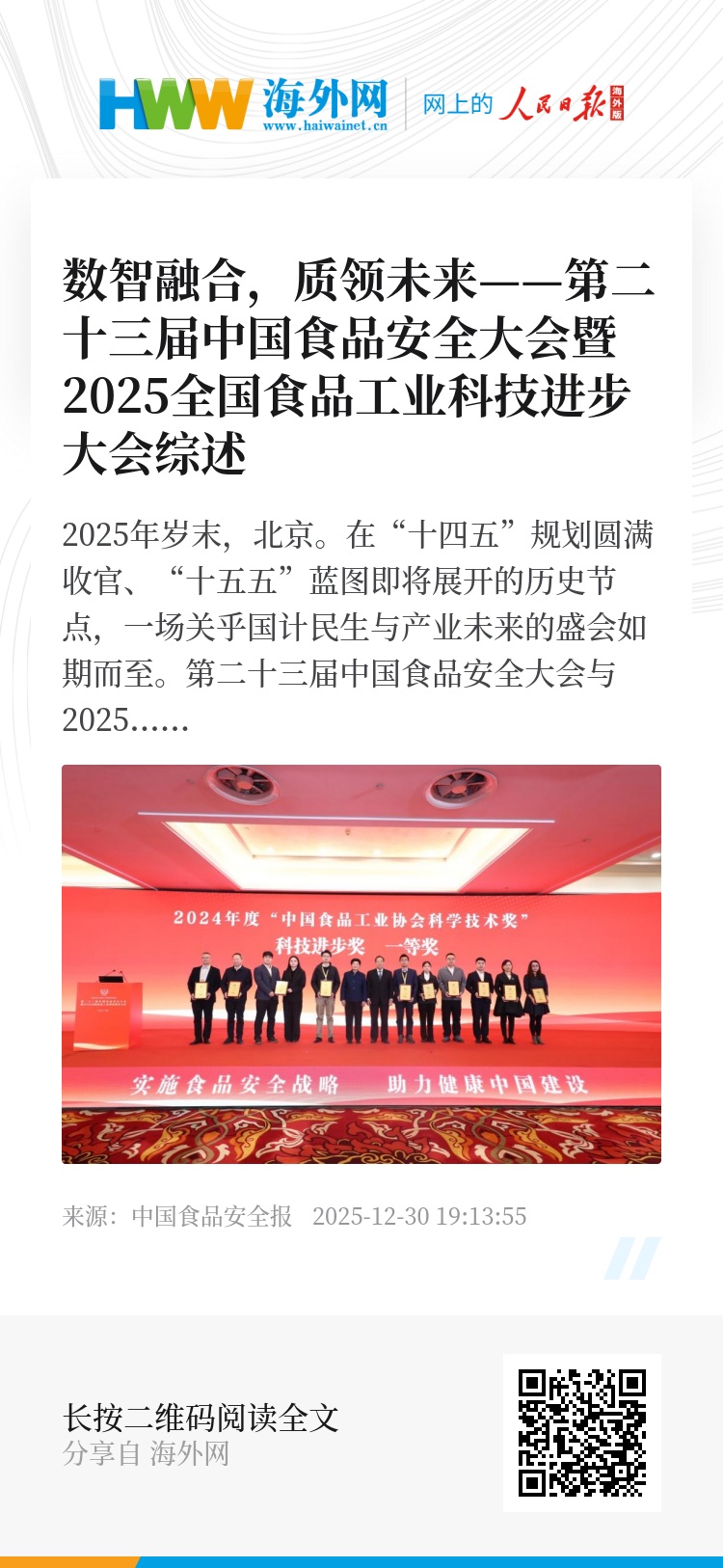 2025年岁末,北京。在“十四五”规划圆满收官、“十五五”蓝图即将展开的历史节点,一场关乎国计民生与产业未来的盛会如期而至。第二十三届中国食品安全大会与2025全国食品工业科技进步大会再度携手,于12月25日至27日在北京隆重召开。