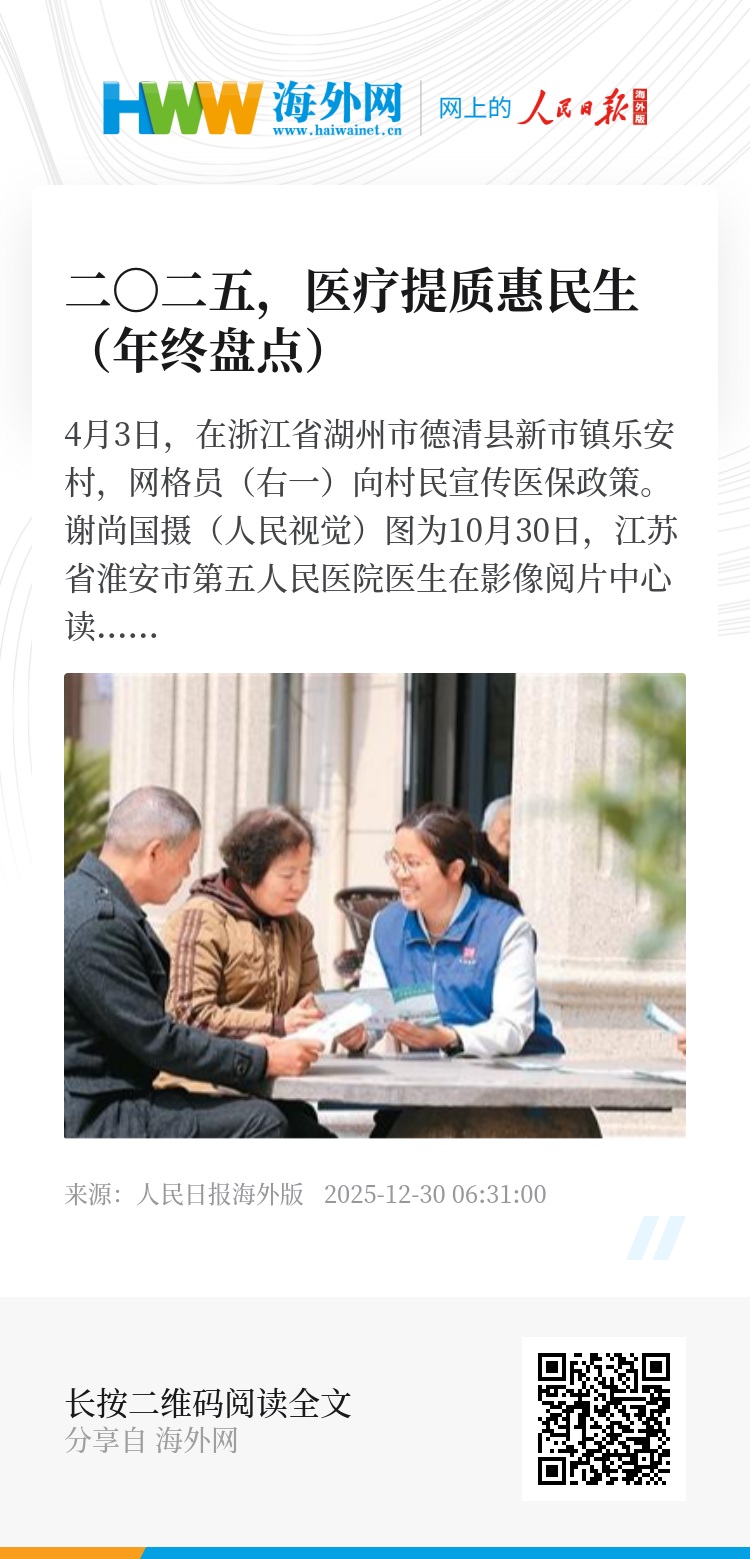 从医保减负到服务升级,从基层扩容到人文关怀,2025年,健康中国建设多点突破、纵深推进,一系列民生举措落地生根,让亿万群众的健康获得感更足、幸福感更可持续。