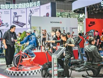 第八届进博会现场,观众在展台体验健身器械。王 初摄(人民视觉)