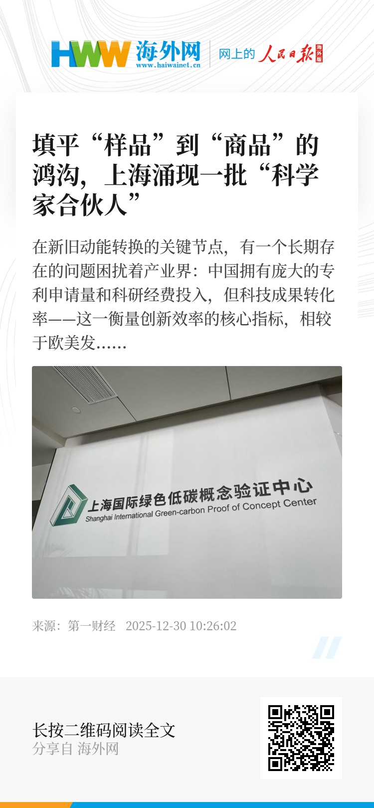 第一财经调研发现,上海正涌现一批新型服务机构,这些机构已超越传统“科技红娘”的简单对接模式,升级为“科学家合伙人”,扮演创新发现、价值共创、风险投资与资源整合等角色,全程陪跑科研人员成果转化,有效突破传统科技服务的价值瓶颈。