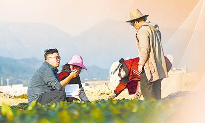 湖北省黄冈市英山县石头咀镇徐套村茶叶育苗基地,农技干部向农户讲解茶叶扦插管理知识。