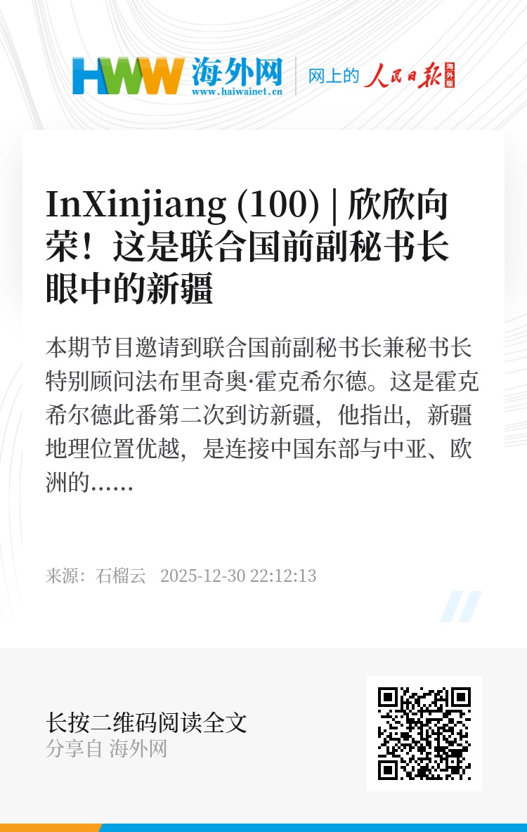 “在我眼中,新疆作为一处经济中心,正积极向世界展现其创新能力、人口持续增长、城市基础设施焕然一新且现代化的崭新面貌。”霍克希尔德表示,希望那些从未到访或对新疆有误解的人亲自来新疆看看,这样可以消除误解、增进了解。