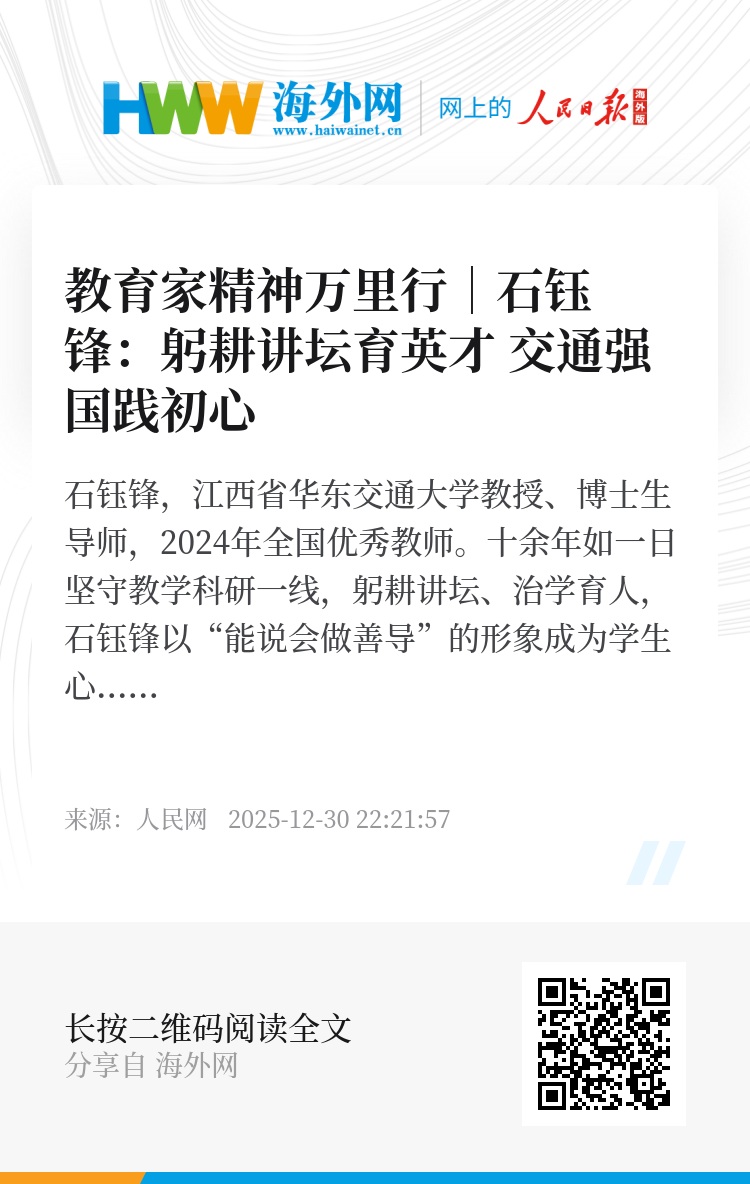 石钰锋积极投身交通强国事业,以实际行动诠释了新时代高校教师的职责与担当。