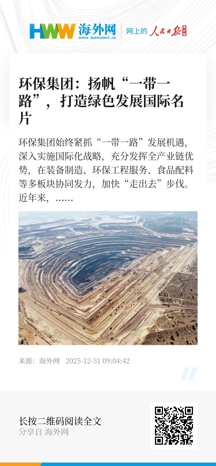 展望未来,环保集团将继续以“一带一路”倡议为引领,持续深化国际化战略布局,进一步提升海外市场竞争力,为全球可持续发展贡献更多“中国方案”,全力书写“出海共赢”新篇章。