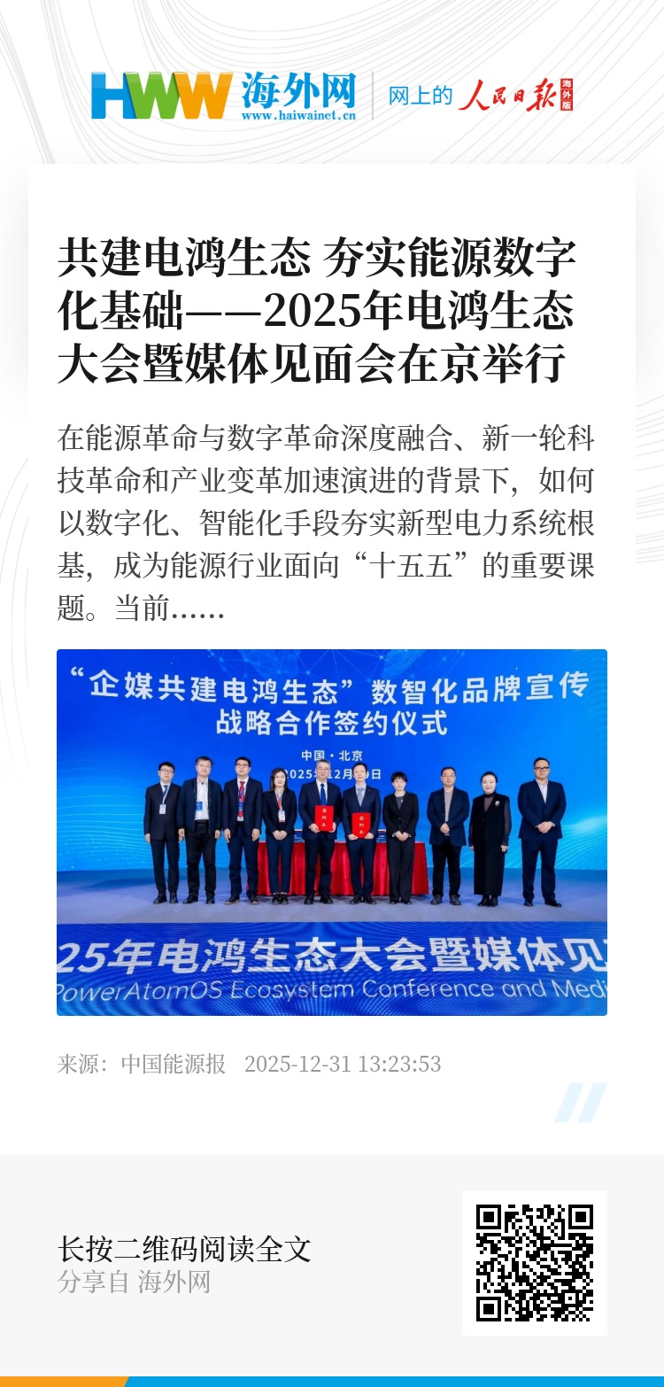12月30日,以“打造电鸿生态,共绘电力物联未来”为主题的2025年电鸿生态大会暨媒体见面会在北京举行。大会由中国南方电网有限责任公司主办,南方电网数字电网集团有限公司、南方电网数字电网研究院股份有限公司承办,近400名来自政府部门、行业组织、能源企业、高校及产业链创新伙伴的代表参会,围绕电鸿开源生态共建、能源数字化与智能化转型路径等议题深入交流,共同探讨以统一电力物联底座支撑新型电力系统建设的实践方向。