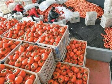 近年来,河北省肃宁县持续推进农业产业结构调整,因地制宜发展特色设施农业,种植高品质蔬菜,促进农民增收,助力乡村全面振兴。图为肃宁县万里镇一家蔬菜种植合作社的社员在分拣收获的西红柿。新华社记者 杨世尧摄
