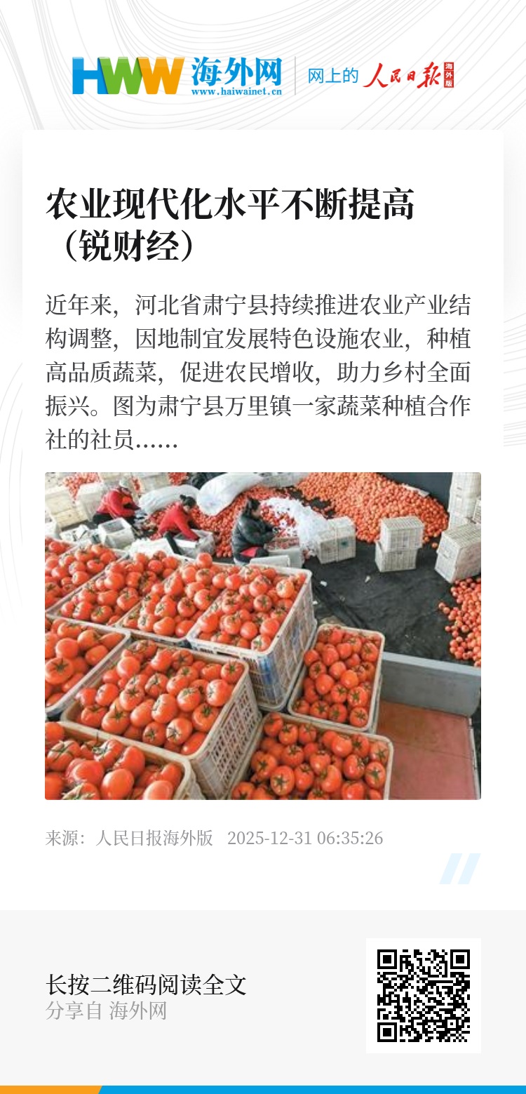 12月29日至30日,中央农村工作会议在北京召开,分析当前“三农”工作面临的形势和挑战,部署2026年“三农”工作。会议强调,农业农村现代化关系中国式现代化全局和成色,必须加快建设农业强国。