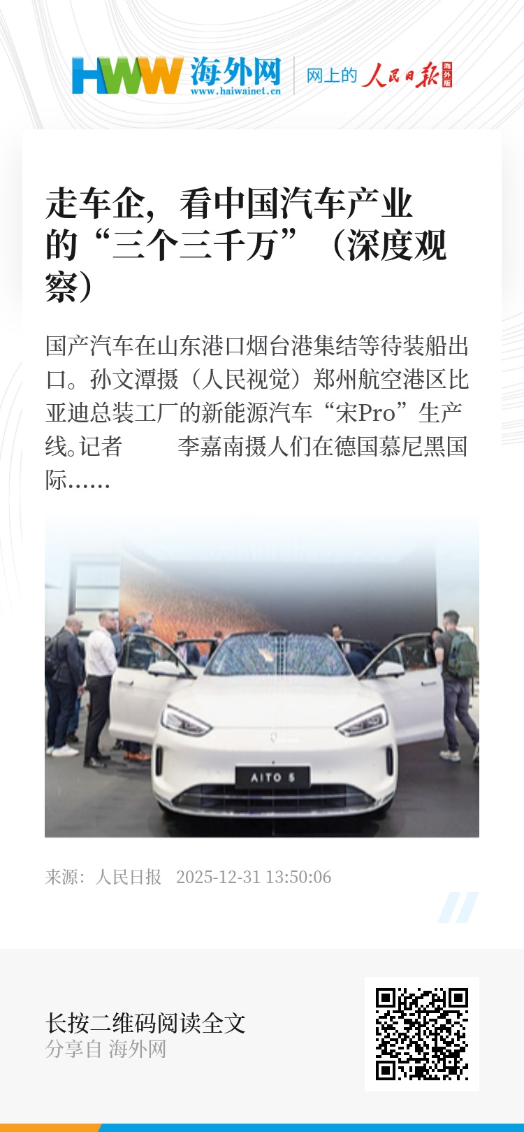 “3个3000万”,彰显了中国制造的强大实力、中国市场的蓬勃活力,为加快发展新质生产力、建设现代化产业体系注入坚实底气。本期产经版带您走进三家企业,感受中国汽车的“3个3000万”。