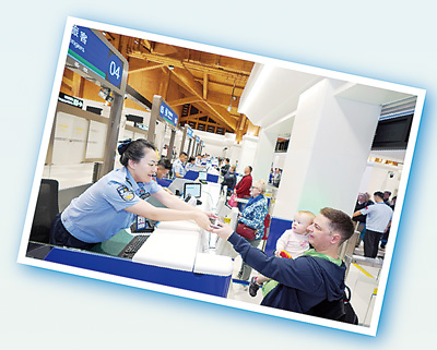 海南三亚凤凰国际机场口岸,外籍旅客在办理入境手续。