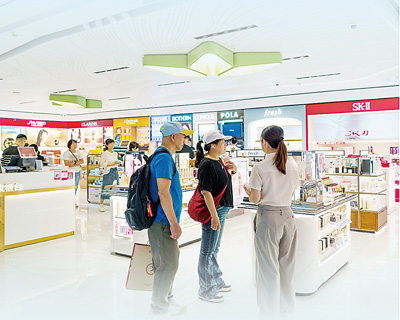消费者在海口美兰机场免税店选购商品。
