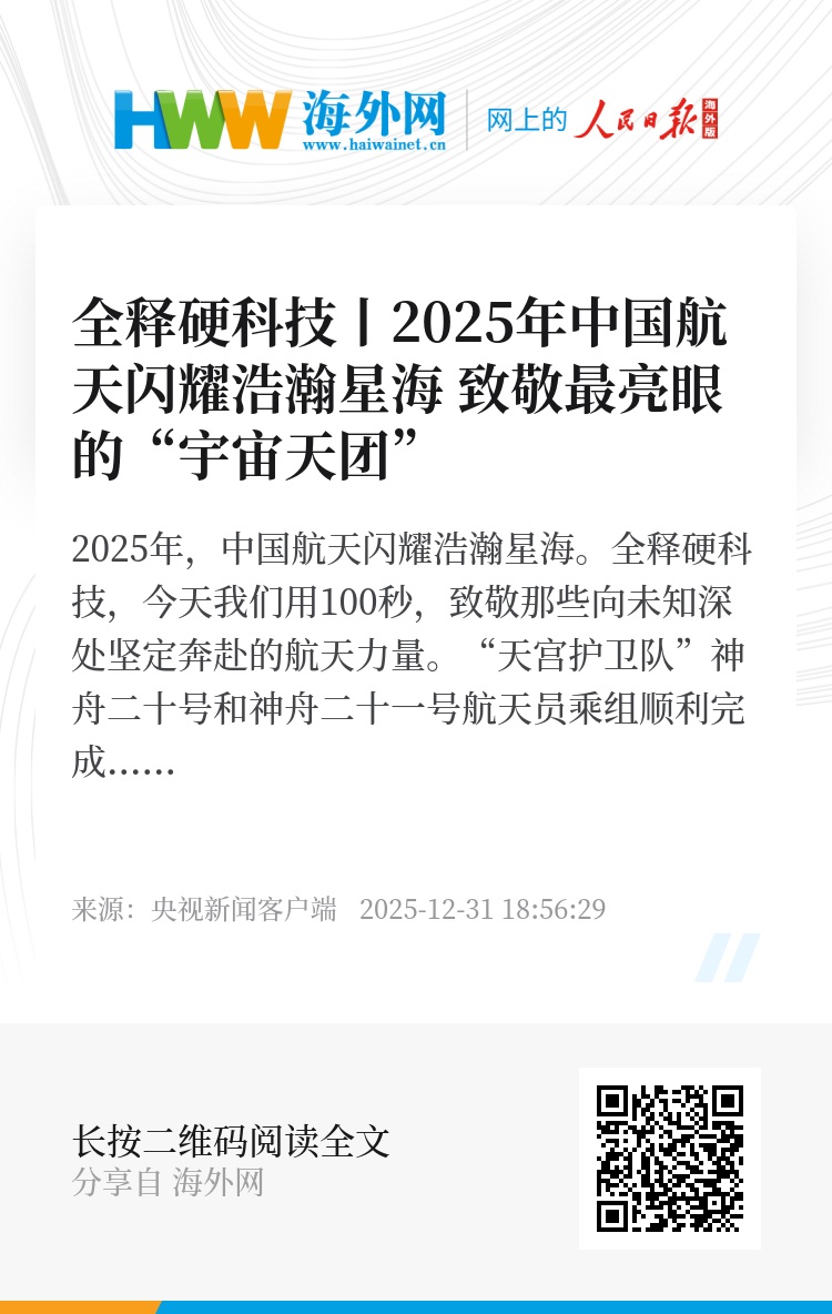 2025年,中国“宇宙天团”在浩瀚苍穹中挥洒下属于这个时代的壮丽诗篇。让我们致敬向无尽远方开拓的人类勇气与星河梦想!