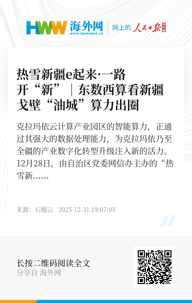 正如网络名人@v闪闪在微博上的感慨:“谁能想到,昔日因石油闻名的‘戈壁油城’,如今藏着全国顶尖的液冷数据中心,把荒原环境带来的剧烈气候影响,变成了算力发展的天然优势。”从“富得流油”到“算力爆表”,克拉玛依正以“数字”与“能源”双轮驱动,在辽阔戈壁上撰写着资源型城市转型升级的全新“进化论”。(石榴云/新疆日报记者 宋海波)
