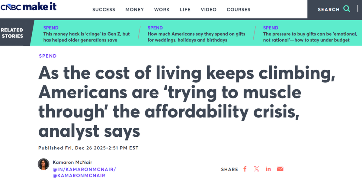 2025年末,“可负担性危机”(affordability crisis)成为美国主流媒体焦点。美国挑起的贸易战,其自伤效应在美国民众的生活成本上体现得淋漓尽致。