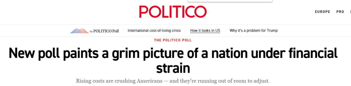 美国政客新闻网(Politico)12月发布的最新民调勾勒出一幅更为严峻的图景:近半数美国人难以负担杂货、公用事业、医疗、住房和交通;因顾忌成本,27%的人不再体检,23%的人跳过处方药;55%的民众将高物价归咎于美国政府。即使在其支持者中,也有21%认为关税目前损害经济。