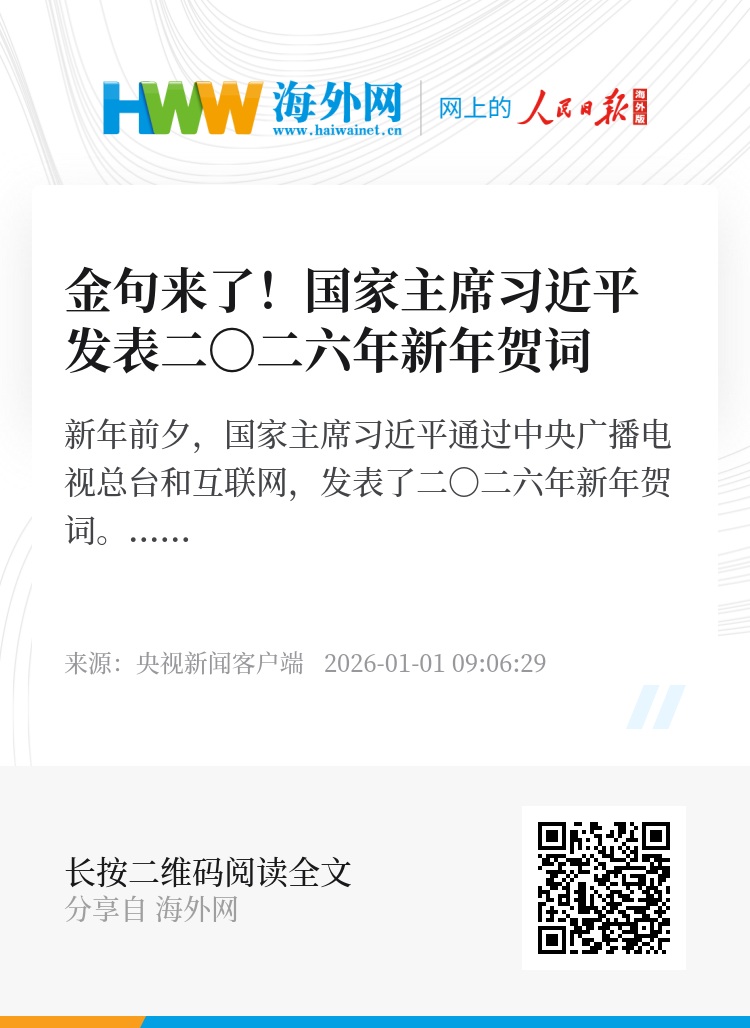 金句来了!国家主席习近平发表二〇二六年新年贺词